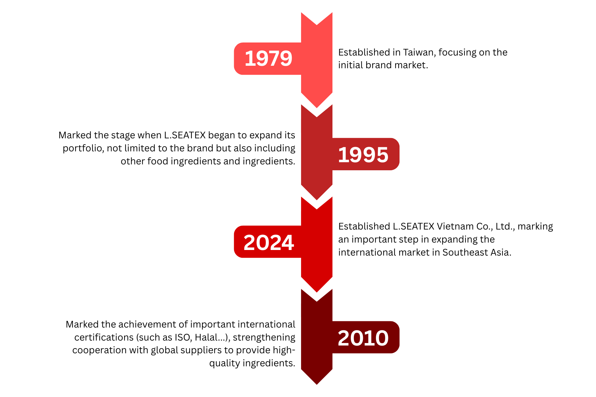 With the support from the Group in Taiwan, LSEATEX Vietnam Co., Ltd. is committed to providing high-quality flavoring products to meet the diverse needs of customers in the food and beverage industry.